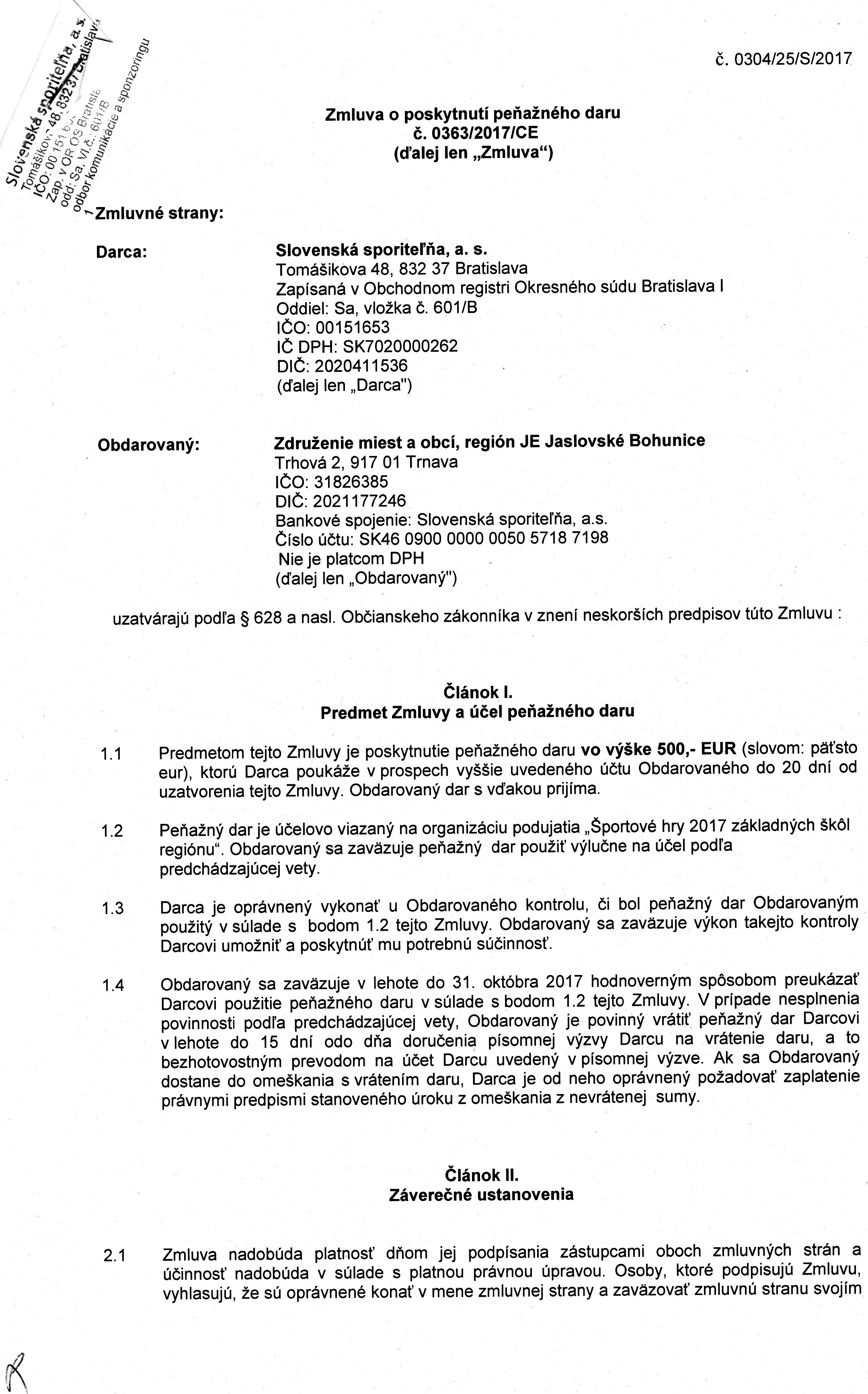 Zmluva o poskytnutí finančného daru